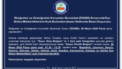 İlçe Nüfus Müdürlüklerinin Açık Bulundurulması Hakkında Basın Duyurusu Kocaeli Valiliği, İlköğretim ve Ortaöğretim Kurumları Bursluluk (İOKBS) Sınavında İlçe Nüfus Müdürlüklerinin…