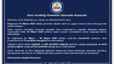 Hava Sıcaklığı Hissedilir Derecede Azalacak! Kocaeli Valiliği, Meteoroloji Genel Müdürlüğü’nden alınan bilgilere göre hava sıcaklığının hissedilir derecede azalarak mevsim normallerinin…