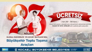 23 Nisan’da Kocaeli’de Ulaşım Ücretsiz Kocaeli Büyükşehir Belediyesi, 23 Nisan Ulusal Egemenlik ve Çocuk Bayramı’nda kent genelinde otobüs, tramvay ve…