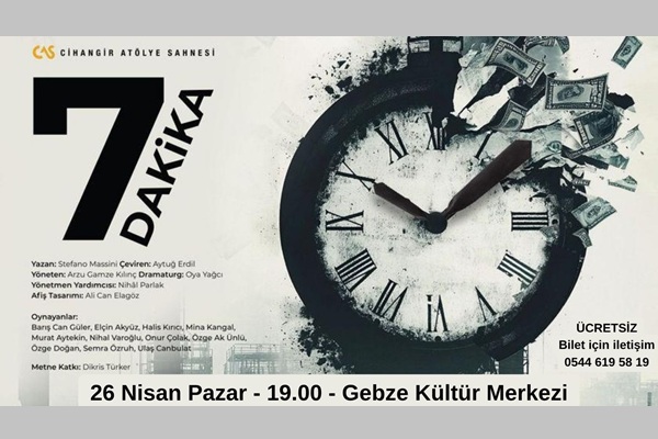 Cihangir Atölye Sahnesi, “7 dakika” adlı oyunu 26 Nisan Pazar günü saat 19.00’da Gebze Kültür Merkezinde ücretsiz sahneleyecek.