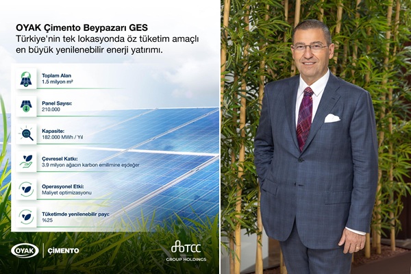 Türkiye’de bir sanayi üreticisi tarafından tek bir lokasyonda öz tüketim amacıyla hayata geçirilen en büyük yenilenebilir enerji projesi olma özelliği taşıyan santral OYAK Çimento Fabrikaları A.Ş.’nin toplam enerji kullanımında yenilenebilir enerjinin payını yüzde 25’e yükseltecek.